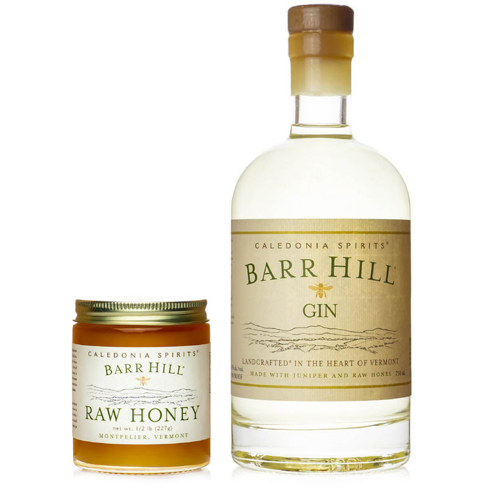 Kit includes: Barr Hill Gin (750 ml), Caledonia Spirits Barr Hill Raw Honey (1/2 lb)