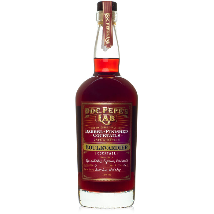 The Boulevardier is prepared according to the classic recipe first appearing in print in 1927, in Harry McElhone's "Barflies and Cocktails". A bittersweet mixture of rye whiskey, bitter orange liqueur, and sweet vermouth is blended in a used rye whiskey barrel and left to mellow and combine. Over time, the Boulevardier extracts vanilla and spice notes from the barrel and develops a silky texture and smooth finish.