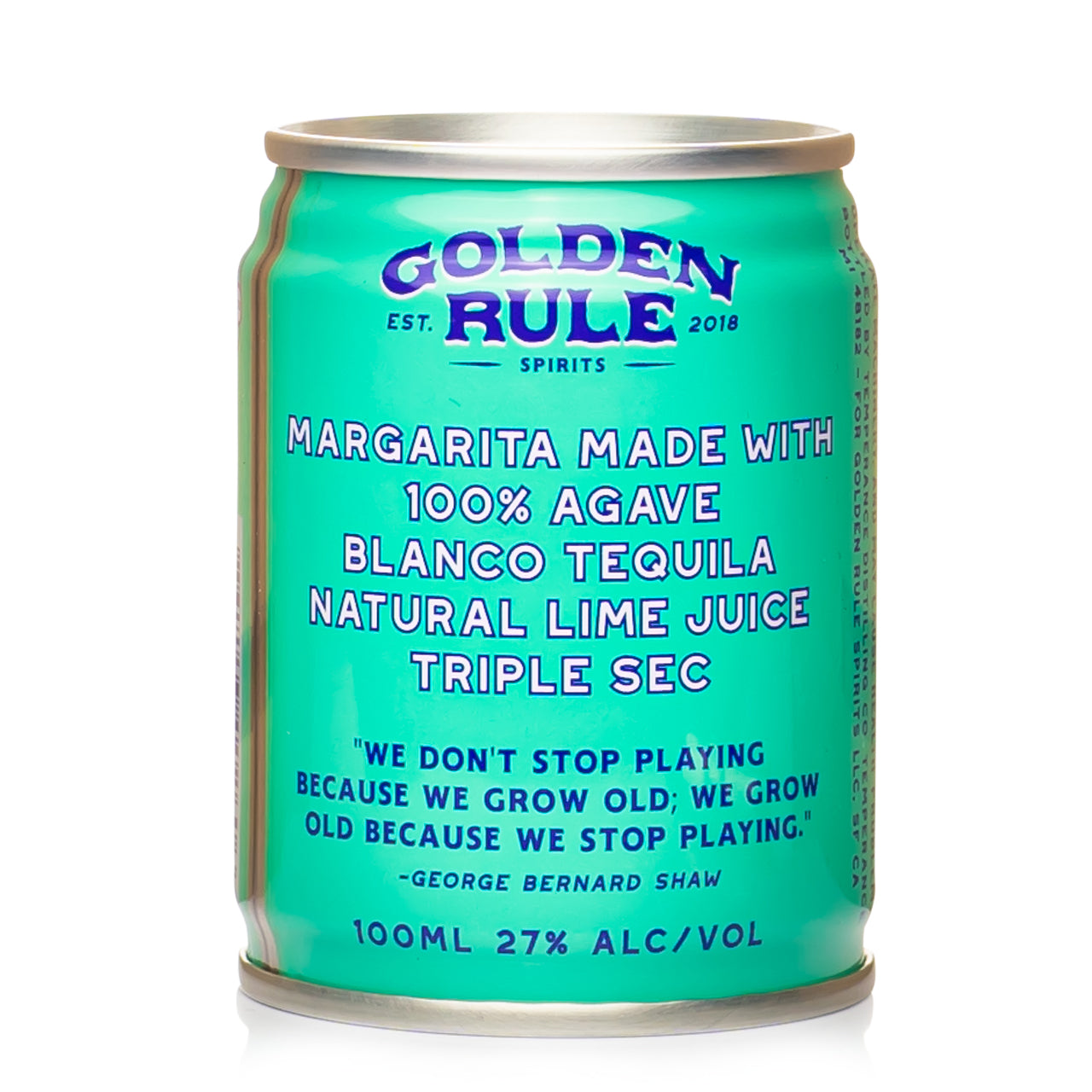 Local SF based Golden Rule Cocktails were one of the first authentic, high quality, full proof canned cocktail brands we carried here at B&B, and it was this Margarita that convinced us. Crafted from 100% agave tequila, a proprietary triple sec, and lots of pure, tart lime juice - the Golden Rule Margarita is a potent, bright, and refreshing cocktail. The tiny can is ready to go wherever you're heading, to enjoy, simply shake well and pour over ice!