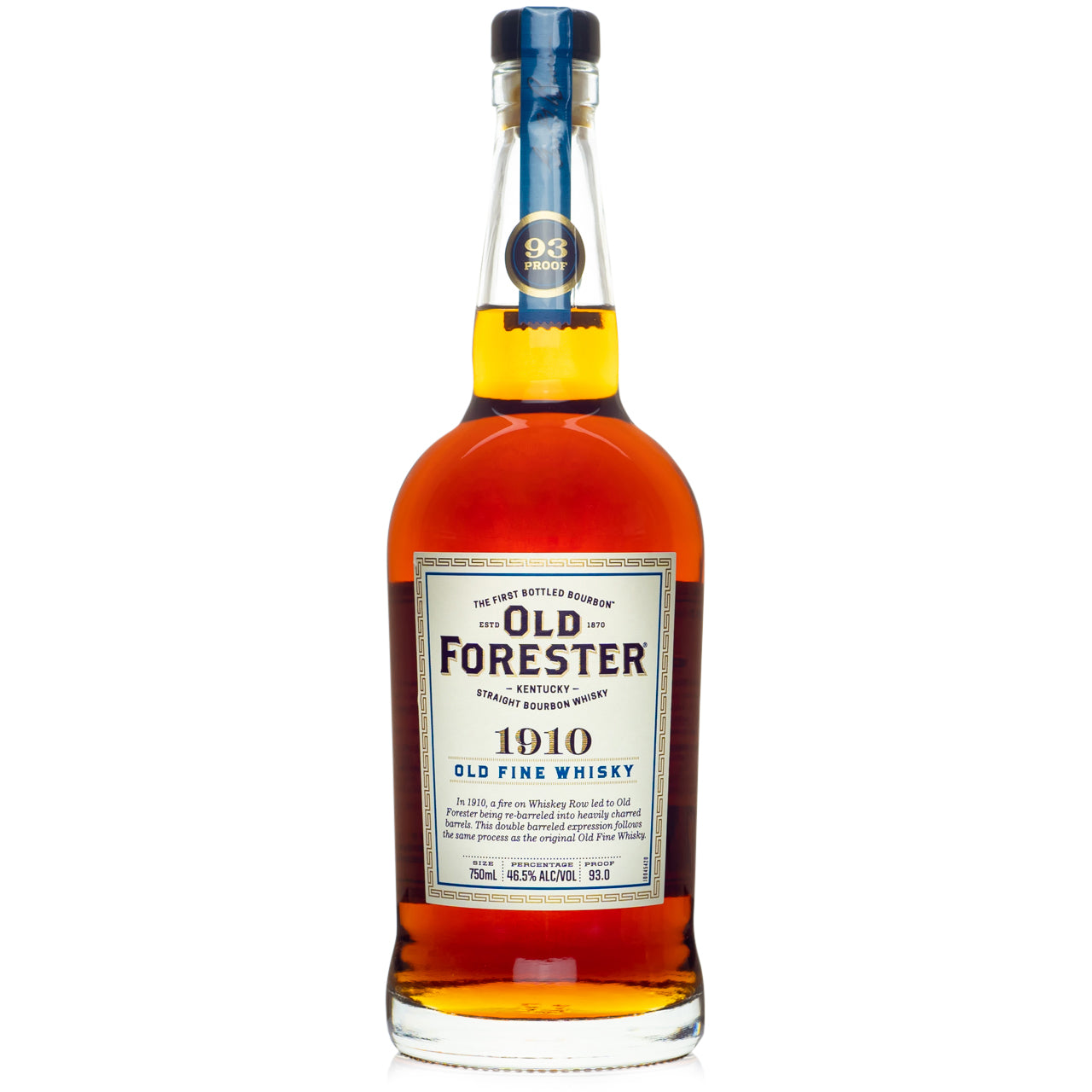 1910 Old Fine Whisky, Old Forester’s fourth and final expression in the Whiskey Row Series, is a double barreled Bourbon, aged originally in a new oak cask and re-barreled into a second heavily toasted oak barrel for additional ageing before bottling at 93 proof.