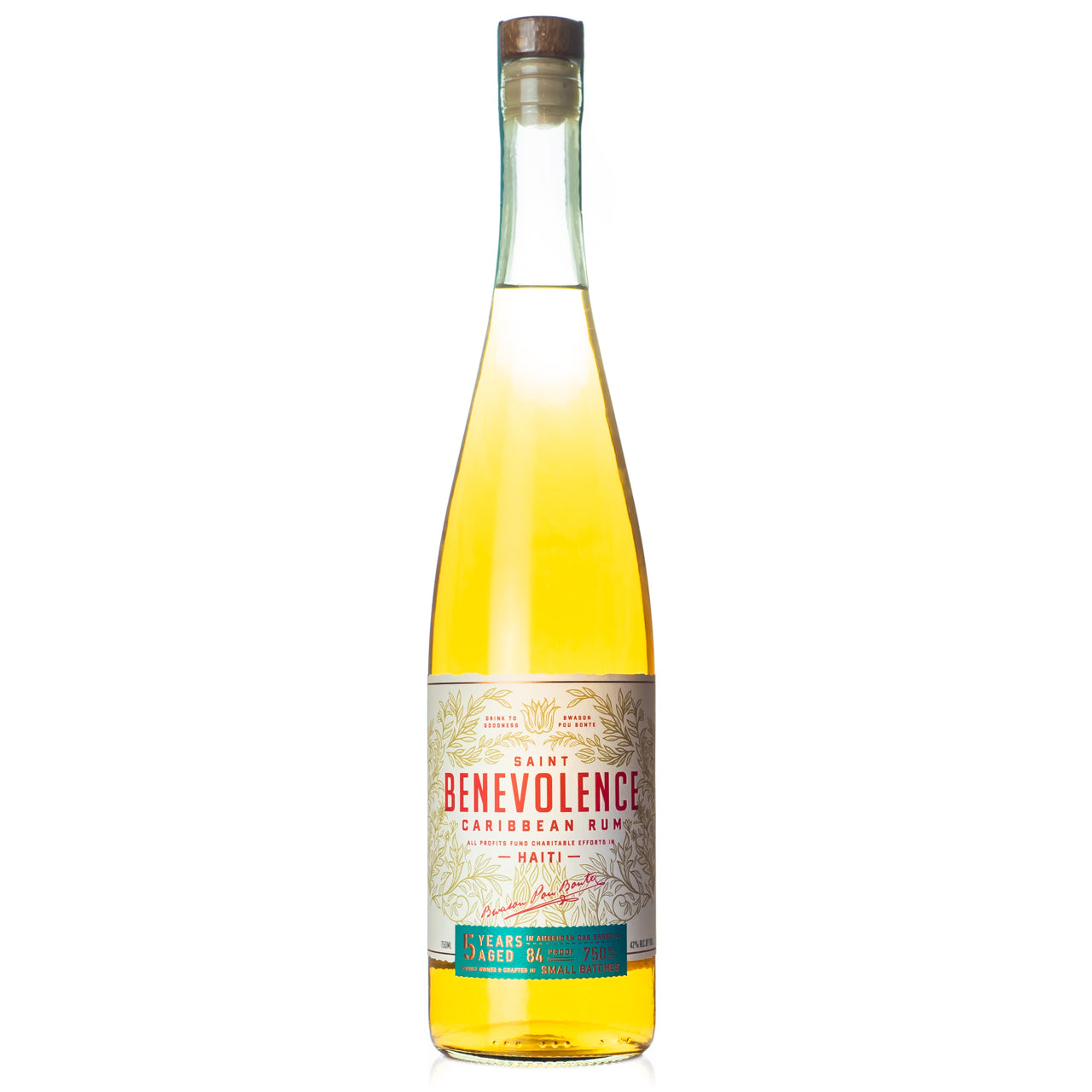 Saint Benevolence is a blend of rum from around the Caribbean, using both pot and column distilled rum made from sugarcane juice and molasses. The final blend is aged in ex-bourbon casks for 5 years and bottled at 84 proof.