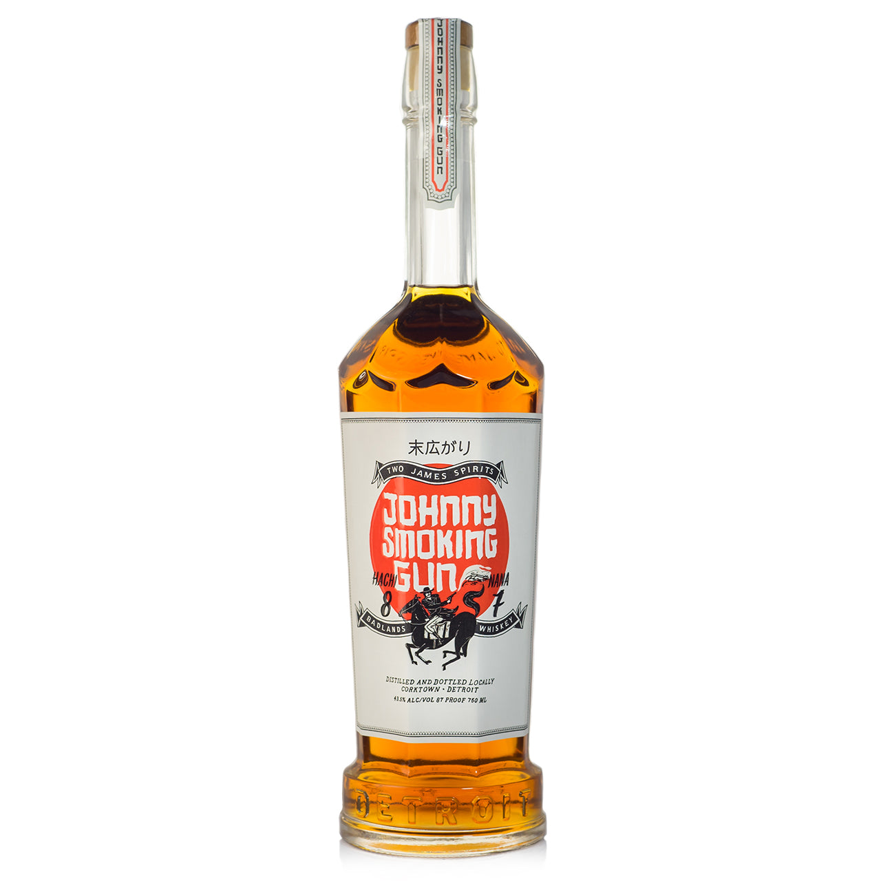 Johnny Smoking Gun is a story of East Meets West. An American Blended Whiskey crafted specifically to compliment the “umami” of the rich pork and fish broths of Japanese cuisine. This delicate smoky blend of 70% corn and 30% rye is infused with smoky Japanese tea to add deep savory and herbal flavors. A fantastic base for unique cocktails.